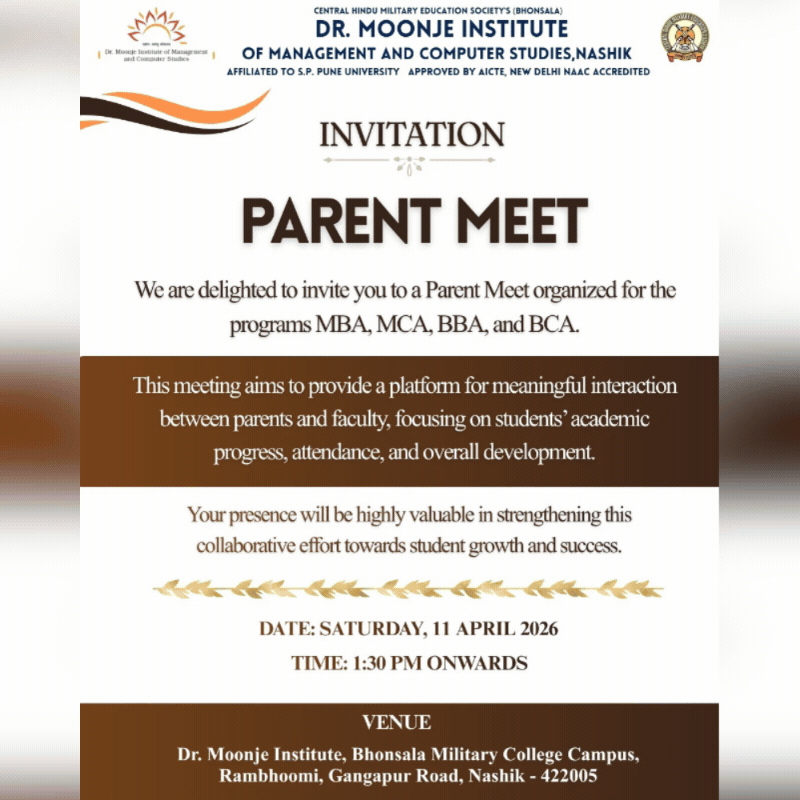 C.H.M.E S's Dr. Moonje Institute of Management & Computer Studies Bhonsala Military College Campus, Savarkar Nagar, Rambhoomi, Gangapur Road, Nashik 5