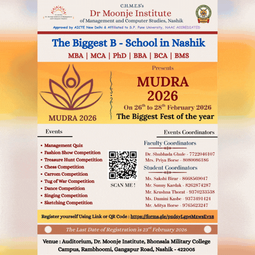 Dr. Moonje Institute of Management in Nashik is an excellent college where the faculty imparted a wealth of knowledge on various aspects of management, including industry culture, communication, technical, and presentation skills.Vishwadeep Nanda